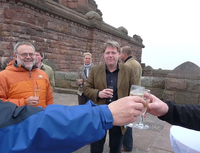 Im Rahmen der Umsetzung der infrastrukturellen Mittel des Kyffhäuserkreises aus dem Konjunkturprogramm II der BRD stehen die umfangreichen und bautechnisch schwierigen Arbeiten der statisch-konstruktiven Sicherung der südlichen Ringmauer am Wahrzeichen unseres Kreises vor dem Abschluss. Deshalb hatte heute nachmittag der Landrat Touristiker der Region, Vertreter des VdK und auch die Presse geladen, um den Baufortschritt am Kyffhäuser zu zeigen. Ein Grund, schon mal anzustoßen.