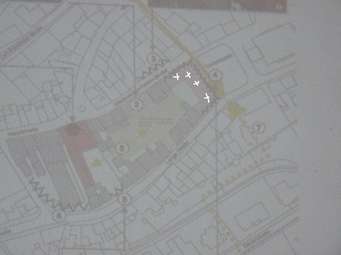 Neues kam aber von der Stadtverwaltung. Der Leiter Wirtschaftförderung, Uwe Dönhoff, machte darauf aufmerksam, dass der Fördermittelgeber Veränderungen bei dem zu fördernden Projekt angemahnt hat. Während im bisherigen Projekt alle Wohnungen im Bereich der Immobilie Cafe Pille untergebracht werden sollte, ist jetzt eine Splittung notwendig. Teile des Cafe Pille die nicht Bestandteil der Außenfassade Richtung Hauptstraße sind (Teile im Innenhof) sollen nicht wieder bebaut werden sondern sollen zu Gunsten von Grünanlagen zurückgebaut werden. Ein Teil der zu schaffenden neuen Wohnungen sollen in einem Gebäude untergebracht werden, dass im westlichen Teil des Parkplatzes neben der Trinitatiskirche liegt (bisheriger Privatparkplatz - weiße Kreuze in der Bildergalerie). Der bisherige Fußweg über den Parkplatz wird dann Fußweg vor dem Gebäude.