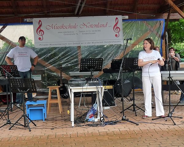 Autor: khhDie Musikschule Notenland machte schon vor dem Eingang auf den heutigen Tag der offenen Tür aufmerksam. Musikschüler spielten für die bei diesem Wetter wenigen Passanten, oder die zielgerecht kommenden Besucher.
