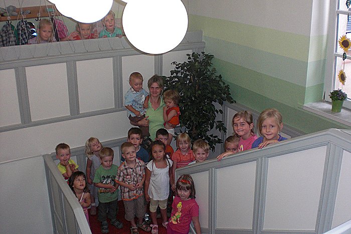 Die Stadt Bad Frankenhausen investierte. Und so konnte unter der Federführung der Architekten Petermann, Thiele & Kochaneck das Treppenhaus in der "Kindervilla" nicht nur renoviert, sondern auch das Flair der Villa hervorgehoben werden. In nur drei Wochen werkelten Malerfachbetrieb Uwe Lange, Firma TEPPICH-REIN Olaf Werschal, Bau- und Möbeltischlerei Eberhardt, Hausmeisterservice Gerald Kühnemund, Heizungsservice Volker Böhme, Elektromeister Bracke sowie Peter Langbein und unser Hausmeister Hand in Hand.