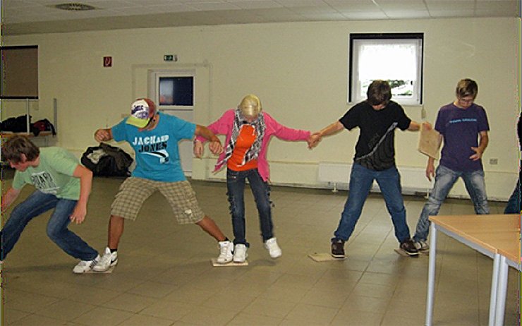 Es ging darum zu sehen, wie stark die Klasse zusammen hält. Bei 2 Spielen war es besonders harte Arbeit den Zusammenhalt zu zeigen. Das war zum einen das Moor, bei dem der zusammen erst nach mehreren Anläufen geschafft wurde. Die Klasse hatte für 16 Schüler 16 Holzbrettchen um auf die andere Seite des Raumes zu kommen. Ebenso schwierig war der "Gefängnisausbruch". Dort waren 3 Seile im Dreieck an verschiedene Bäume gefesselt.