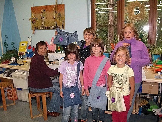 Autor: khhAus mitgebrachten alten Jeanshosen zauberten die Kids mit Hilfe von Petra tolle Jeanstaschen. Auf einfache Weise wurde der Umgang mit der Nähmaschine erklärt und an einem Stoffstückchen probierten die Kinder verschiedene Stiche zuerst aus.