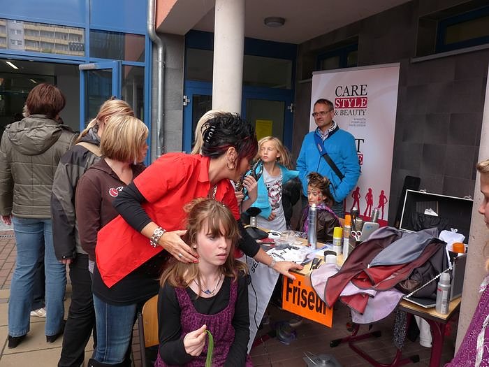 Am Nachmittag herrschte besonders beim Frisieren Gedränge. Während die Schülerinnen sich verschönern ließen, warteten die Eltern geduldig, bis man fertig war.
