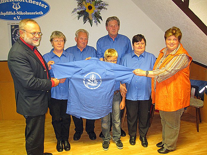 Landrat Hengstermann übergab die Bewilligung von 1.100 Euro dem Schalmeienorchester, die Ministerpräsidentin Christine Lieberknecht für die Kofinanzierung einheitlicher Oberbekleidung für die Musiker gewährt hatte.