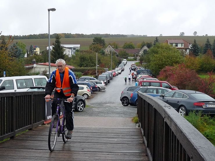 Der Dank geht natürlich auch wieder die Organisatoren von der SV Glückauf Sondershausen, die diesen Lauf trotz nicht gerade guter Witterungsbedingungen wieder sehr gut über die Bühne brachten. Damit sich die Zuschauer an der Strecke orientieren konnten, fuhr dieser Sportfreund immer dem Spitzenreiter voran.