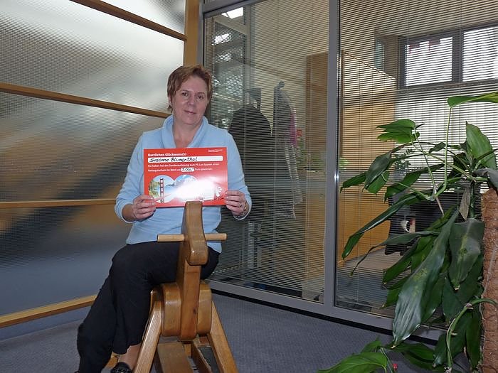 Bei der diesjährigen PS-Los Sonderauslosung im Herbst, die unter dem Motto Freude schenken und mit etwas Glück 60 Reisen a 3.000 Euro und 60 x 1.000 Euro gewinnen" stand, gab es auch wieder glückliche Gewinner aus dem Kyffhäuserkreis. So kamen insgesamt vier Reisegutscheine und drei Bargeldgewinne in Höhe von je 1.000 Euro Kunden der Kyffhäusersparkasse zugute. Besonders groß war die Freude bei Susanne Blumenthal aus Sondershausen, die ihren Reisegutschein von ihrer Kundenberaterin Ines Kästner am heutigen Nachmittag überreicht bekam.