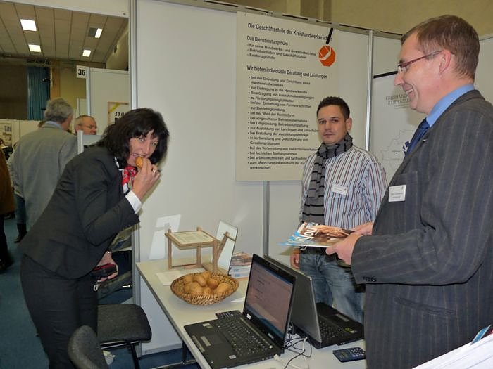 Und auch so manchen Erfahrungsaustausch gab es. So überzeugte sich Ausbildungsleiterin Heike Stegmann (Kyffhäusersparkasse) bei der Kreishandwerkerschaft, wie die Brötchen schmecken. Aber Spaß beiseite, man konnte sehen, wie sich auch viele örtliche Politiker selbst an den Ständen informierten. Machen Sie einfach mit kn einen ersten Streifzug.