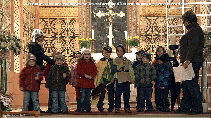 Autor: khhAm 09.11. war es endlich soweit! Um 17:00 Uhr trafen sich Kinder, Eltern und Großeltern und Gäste zur Martiniandacht in der Kirche "St. Bonifatius" in Großfurra. Zunächst begrüßte Herr Pfarrer Loohß die Kinder und Erwachsenen, es wurden Lieder gesungen und Kinder der evangelischen Kindertagesstätte Großfurra führten in einem Stück die Mantelteilung auf. Die Grundidee des Martinsfestes - das Teilen mit anderen - übten alle am Ende des Gottesdienstes mit den leckeren Martinshörnchen, die Frau Neumann am Nachmittag mit Kindern der Kita gebacken hatte.