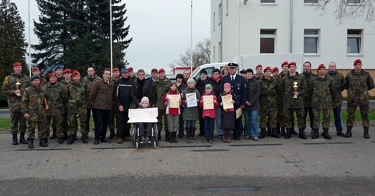 Ich stelle fest: Auftrag ausgeführt! Wir haben in einer gemeinsamen Kraftanstrengung den bisher bestehenden Bahnrekord im 24-Stundenschwimmen gebrochen, so Oberstleutnant Klaus Glaab vor Gästen und Soldaten beim Appell heute nachmittag. Die 30949 geschwommenen Bahnen erbrachten eine Spende in Höhe von 1547,15 Euro. Ermöglicht wurde diese Summe vom Sponsor Autohaus Peter GmbH.