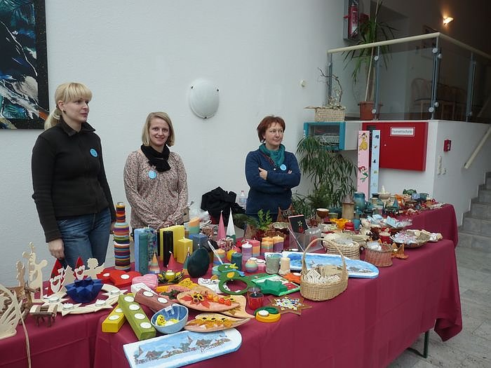 Aber auch Integrationsmaßnahmen laufen an dem Berufsförderzentrum. Dabei werden auch viele Gegenstände angefertigt, die anschließend sogar verkauft werden. In der Ergotherapiepraxis Haus der Vielfalt, wird nicht nur beschäftigt, sondern auch therapiert. Die hergestellten Artikel werden z.B. auch auf dem Bauernmarkt oder beim Lichterfest verkauft. Zum Tag der offenen Tür überzeugte sich auch Sparkassenvorstand Ulrich Heilmann von der Kyffhäusersparkasse und der Filialleiter der Filiale Bad Frankenhausen, Rene Jacob, von der Leistungsfähigkeit. Sie haben auf den Bilder etwas schönes entdeckt? Kein Problem, denn beim Haus der Vielfalt kann man auch Bestellungen aufgeben.