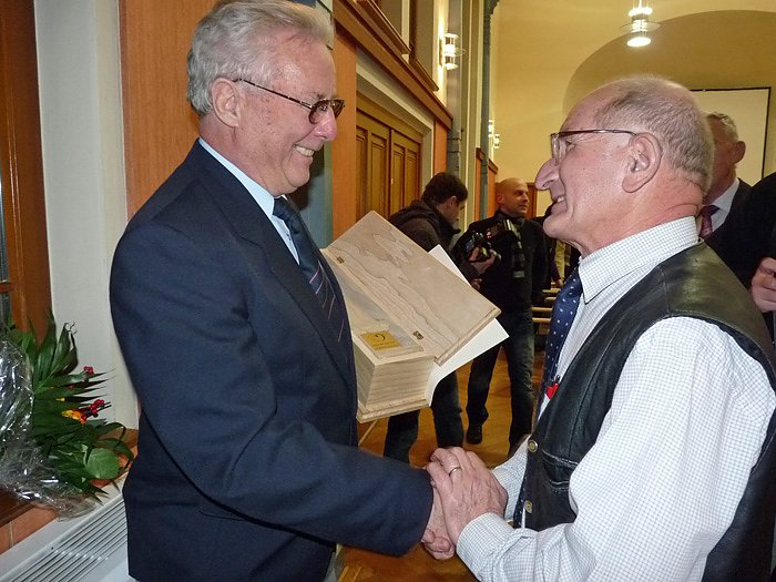 Aus der Hand von Bürgermeister Joachim Kreyer erhält Raimund Hagenunger die Ehrengabe
