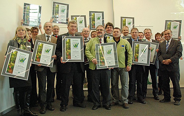 Der Präsident des 600 000 Mitglieder starken Deutschen Wanderverbandes, Dr. Hans Ulrich Rauchfuß, überreichte Jörg Nonnen (im Bild links) von der Naturparkverwaltung Kyffhäuser die Urkunde und die Bestandsanalyse des zur Prüfung eingereichten Datenmaterials der Naturparkverwaltung Kyffhäuser.