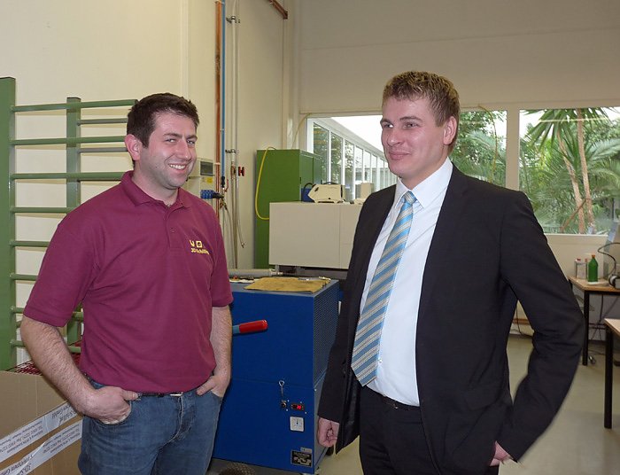 Und die Frankenhäuser sind sogar bei der Produktion vor Ort. Einer der Werkzeugeinrichter, Christian Besser, stammt auch noch per Zufall aus der Kurstadt. Und auch einer der Bediener der Sprizgußmaschienen, Torsten Reinecke hatte früher mal in der Nähe der Oberkirche gewohnt gehabt.