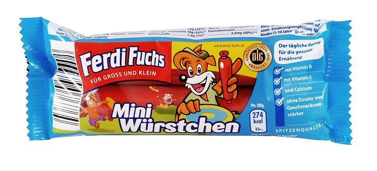 So preist der Hersteller Stockmeyer seine "Ferdi Fuchs Mini Würstchen" als "täglichen Beitrag für die gesunde Ernährung" an. Das Produkt soll "stärkere Knochen und Zähne", das "Zellwachstum" und einen "reibungslosen Stoffwechsel" fördern. Tatsächlich fällt es vor allem durch einen hohen Salzgehalt von 2 Gramm pro 100 Gramm auf, der bei der "Nährwert-Ampel" mit einem roten Farbfeld gekennzeichnet würde.