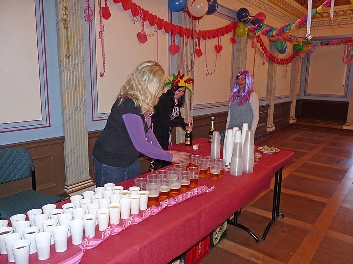 Im Ratssaal wurde nicht etwa schon für die nächste Hauptausschusssitzung am Donnerstag eingedeckt, sondern die Getränke sind für die kleinen Prinzessinnen und Prinzen vorn und für großen Prinzessinnen und Prinzen hinten eingedeckt.