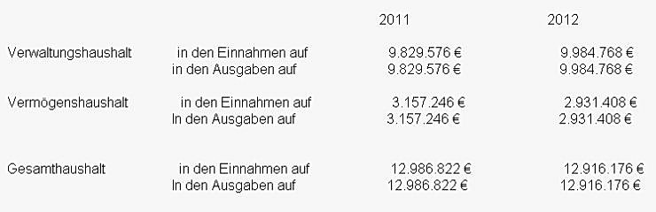 Der Haushalt für die kommenden Jahre sieht wie folgt aus: