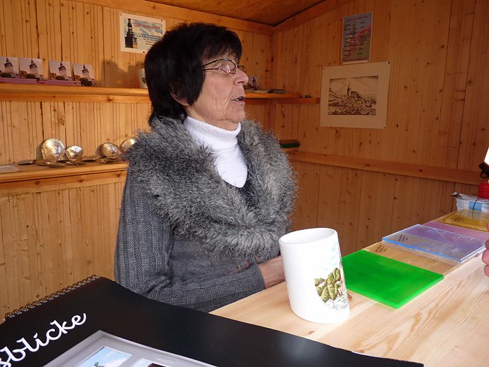 Bärbel Köllen war heute schon wieder aktiv und verkaufte Souvenirs zu Gunsten des schiefen Turms. Dazu wurde ein Verkaufsstand am schiefen Turm errichtet, der ab sofort bis Mai an den Wochenende auch als entsprechender Informationspunkt vom Förderverein betrieben werden wird.