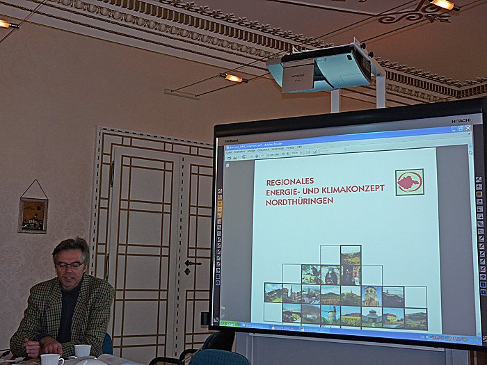 Der Leiter der Regionalen Planungsgemeinschaft Nordthüringen, Peter Hengstermann, hatte sich für die Vorstellung der Studie Unterstützung in Form von Prof. Jörg Wagner, Präsidenten der Nordhäuser Fachhochschule, sowie Marion Vetter und Lutz Kuhmann von der Planungsstelle der Regionalen Planungsgemeinschaft Nordthüringen ins Boot geholt.Aus gehend von dem regionalen Raumordnungsplan, der bereits seit 1999 entwickelt wurde, war auch seit 2009 an einem regionalen Energie- und Klimakonzept gearbeitet worden. Waren in dem damaligen Raumordnungsplan bereits 1.552 ha Vorranggebiete für Windenergie ausgewiesen worden, so wurden in dieser Studie aber auch die anderen erneuerbaren Energien, wie Sonne, Erdwärme, Abwasserwärme und Biomasse einbezogen.