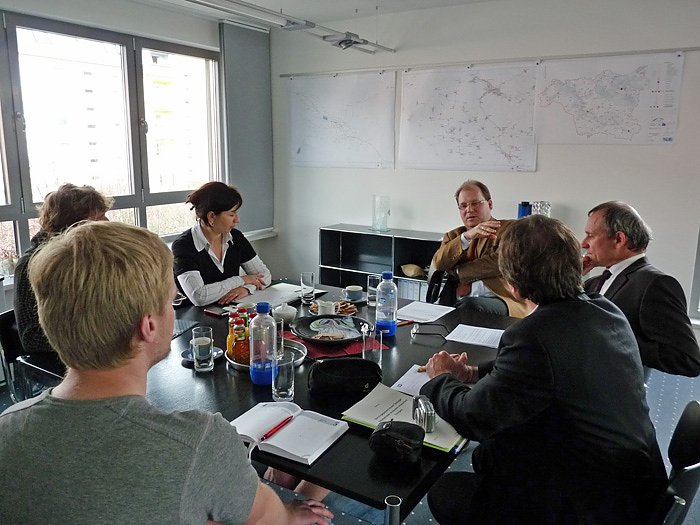 Wichtig für Anja Siegesmund, die Fraktionsvorsitzende Bündnis 90 / Die Grünen im Thüringer Landtag (hier im Gespräch mit den beiden Geschäftsführern Hans-Christoph Schmidt (Mitte) und Wilhelm Schreier) die Arbeitsweisen und Probleme der Stadtwerke kennen zu lernen.