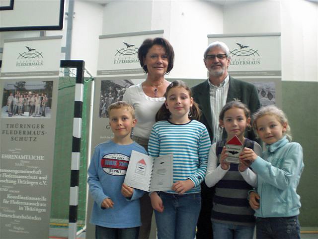 Für diesen Beitrag im Rahmen der Aktion Fledermausfreundlich zeichnete Sauerbier die Grundschule Wiehe, im Auftrag des Thüringer Ministers für Landwirtschaft, Forsten, Umwelt und Naturschutz mit der Ehrenurkunde und der Ehrenplakette des Ministers Jürgen Reinholz aus. Es ist ein besonderes Novum, sich fledermausfreundliche Schule nennen zu dürfen!!!