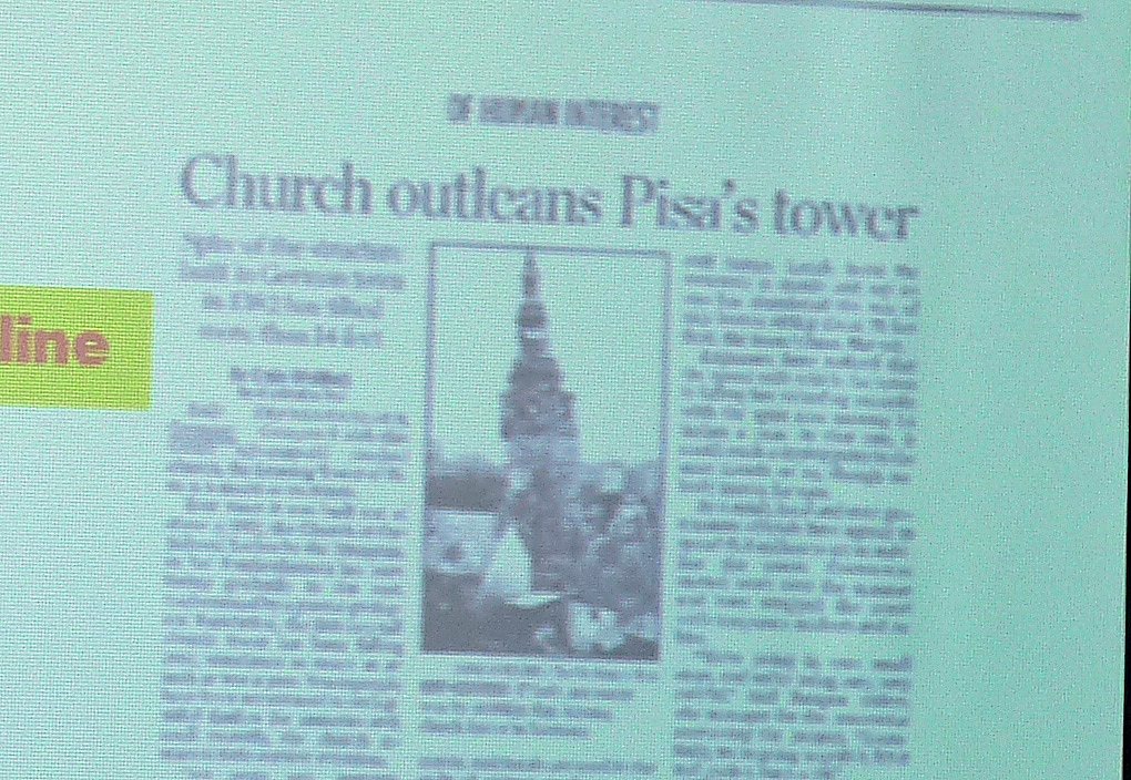 Und die Vermarktung läuft schon an. Selbst Zeitungen in Übersee berichten schon vom schiefen Turm der Oberkirche, wie einer der Zeitungsausschnitte zeigt.