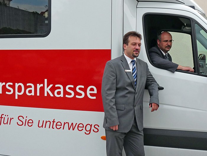 Es war im Mai 1991, als der erste Tourenplan stand. Damals steuerte ein VW Polo die zur Verfügung gestellten Räumlichkeiten auf dem Lande an. Im November des gleichen Jahres wurde der Polo gegen einen Sparkassenbus mit Schalter- und Wartebereich ausgetauscht. Der "alte Benz", wie der Sparkassenbus liebevoll von den Mitarbeitern und Kunden genannt wird, hat nun ausgedient.
