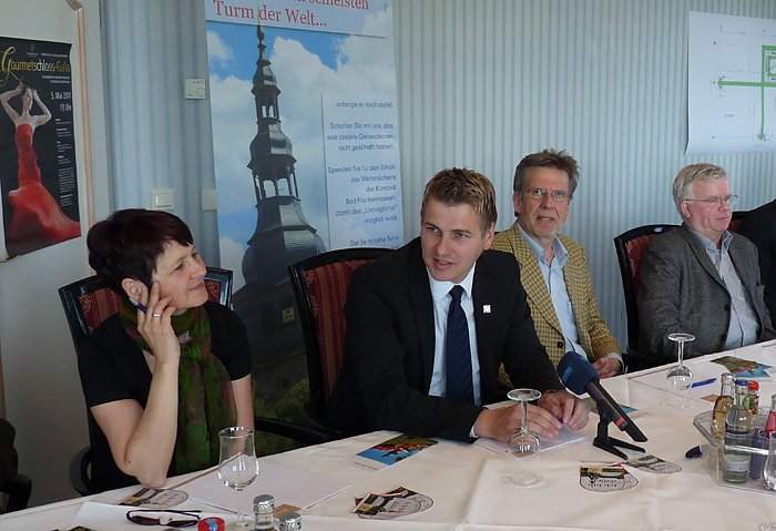 Der Prüfstatiker Dr. Josef Trabert aus Weimar und Horst Kästner konnten auf der Pressekonferenz eine gute Nachricht verbreiten. Die bisher durchgeführten Maßnahmen waren nicht umsonst! Der schiefe Turm ist nicht akut einsturzgefährdet!