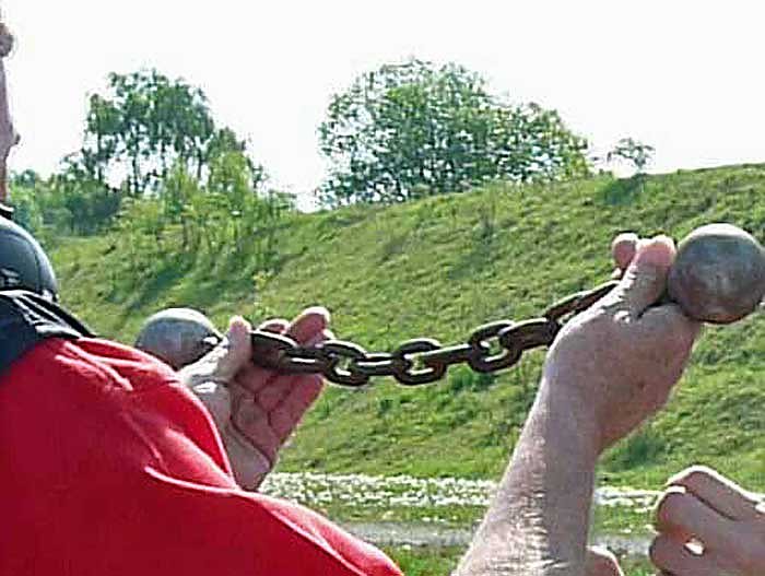 Desshalb haben früher Piraten Kettenkugeln verschossen. Dabei wurde auf den Mast gezielt, um erst mal das Schiff manövrierunfähig zu schießen. So konnte man dann in aller Ruhe das Schiff entern.