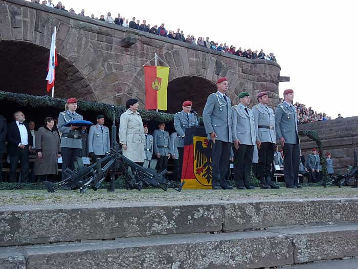 Autor: khhRund 280 Rekruten waren am Fuße des Kyffhäuserdenkmal zu ihrem feierliches Gelöbnis angetreten. Bevor es aber dazu kam überreichte die Ministerpräsidentin Ehrenmedaillen.