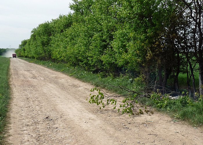 Der einsame Wanderer war auf dem Immenröderweg, von Jechaburg nach Immenrode unterwegs. Schon kurz nach der Waldkante (Immenröder Tor) bemerkte er zwei verschiedene Gehölzstellen in der Pflaumenhecke, die in diesem Bereich als Windbrecher dient, an der Baumschnittmaßnahmen durchgeführt und Feuer entzündet wurde.