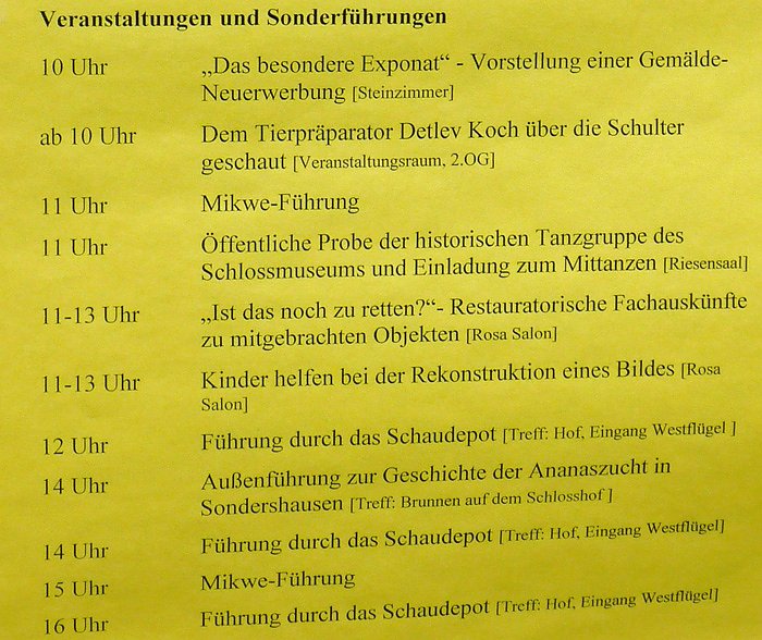 Warum man sich bundesweit mit dem Museumstag und dem ebenfalls bundesweiten Aktionstag unter dem Motto "Mitgedacht, mitgemacht - für die Vereinbarkeit von Familie und Beruf" wissen wahrscheinlich die Verantwortlichen in Berlin auch nicht, oder, was eher der Fall ist, die haben sich über so etwas nicht den Kopf gemacht. Schade das da einiges parallel lief.