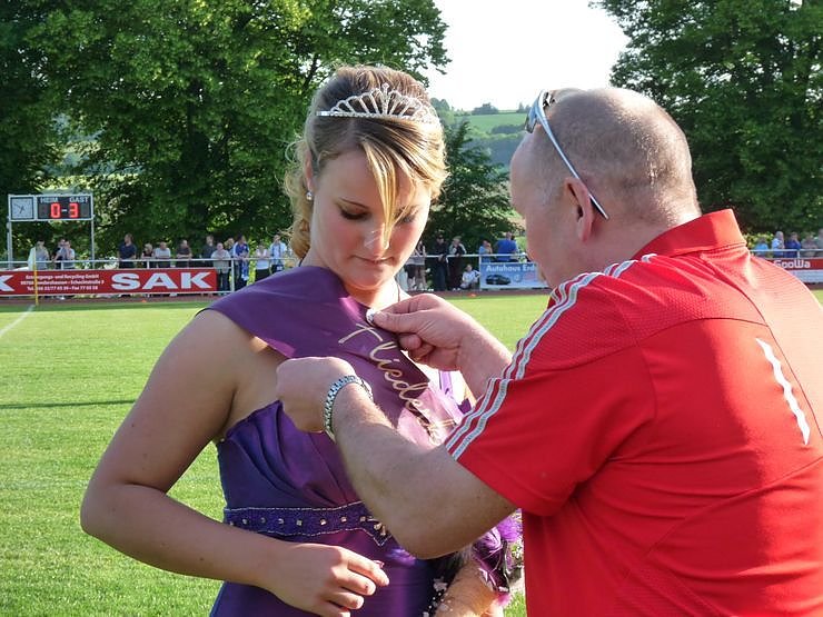 In der Halbzeitpausen, rückte der Vizebürgermeister der neuen Fliederkönigin Lina I. so richtig auf die Pelle und fummelte an ihr herum. Na ja, es ist ja auch schwierig so eine Ehrennadel anzustecken.
