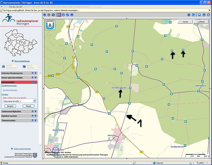 Das Thüringer Verkehrsministerium hat seinen Radtourenplaner jetzt "überarbeitet", diese Pressemeldung des Ministeriums hatte kn Planen Sie Ihre Radtour im Internet auch weiterverbreitet. Gravierende Mängel aus der ersten Version wurden aber nicht überarbeitet, zumindest, was das gebiet um Sondershausen herum betrifft....