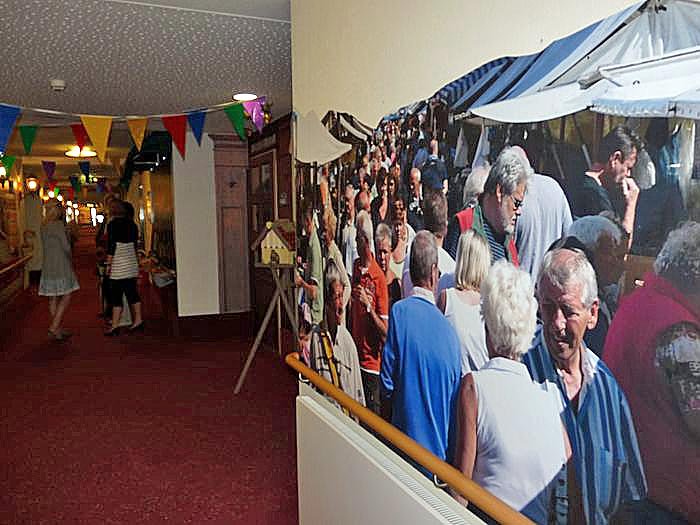 Die Etage wurde so gestaltet, dass man sich teilweise wie in die Stadt versetzt fühlt. Nicht eine der Wände der Etage sieht aus wie die andere. Das soll den dementen Bewohnern helfen, sich auf der Etage besser zurecht zu finden.