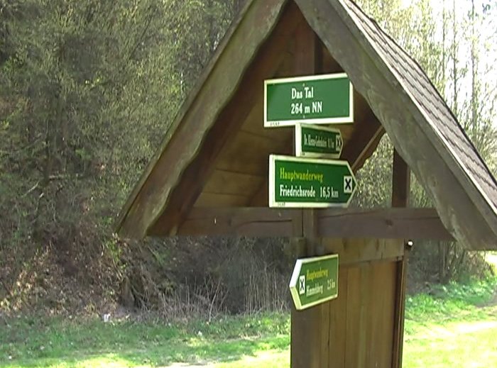 Ach so Hauptwanderweg, bei der Kontrollfahrt am 19. April waren an dem Wegweiser in der Bildergalerie noch zwei Schilder. Eines davon muss wohl jetzt vor Schreck weggelaufen sein, denn am letzten Freitag war es schon verschwunden.