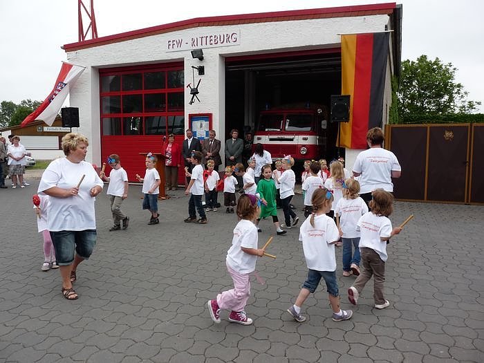 Im Mittelpunkt des Interesses stand jemand ganz anderes. Viel Freude bereiteten die Darbietungen der Kinder der Kindertagsstätte "Zwergenland" Kalbsrieth. Die lieben Kleinen war so bei der Sache, dass sie bald glatt vergessen hatten auf die Toilette zu gehen. Und auch die gefühlte sieben Grad (es waren bestimmt 16°C) haben die Kleinen nicht wahrgenommen, als Landrat Peter Hengstermann eine der Kleinen fragte, ob ihnen kalt sei.