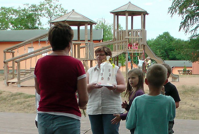Autor: khhEigentlich hatte sie ja vieles organisiert, für die sportlichen und gesunde Projekttage im Kinder- und Jugenderholungszentrum Ferienpark Feuerkuppe in Straußberg im Rahmen es Lidl-Fitnesscup (kn berichtete bereits). Und dann diese Überraschung. Es gab ein Präsent von Schülerinnen und Schülern und deren Eltern. Die Klasse 2 der Grundschule Hohenebra (genauer gesagt Stammgruppe SG III K2) bedankte sich schon mal mit einem Abschiedsgeschenk von Klassenleiterin Helga Schlegel.