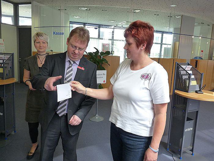 Für wen sollte es gut sein? Eine zufällige Kundin in der der Hauptstelle war die Glücksfee, die ermitteln sollte, wer den 500-Euro-Spargewinngutschein bekommen sollte.