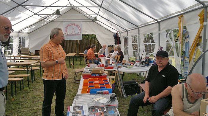 Zu dieser Gelegenheit konnte ein neues Mitglied in die Reihen des Vereins aufgenommen werden, auch wurden weitere Ehrungen an Helfer und Unterstützer des Vereins vergeben. Bei angenehmen 28°C und einer leichten kühlen Briese kam man sich bei kühlen Bier und roter Fassbrause schnell näher und so dauerte es nicht lange, da bildeten sich allerlei Grüppchen, in denen diskutiert und gefachsimpelt wurde. Für die super gute Verpflegung sorgte, wie in den letzten Jahren auch, das Team vom "B 87" Raststättewagen.