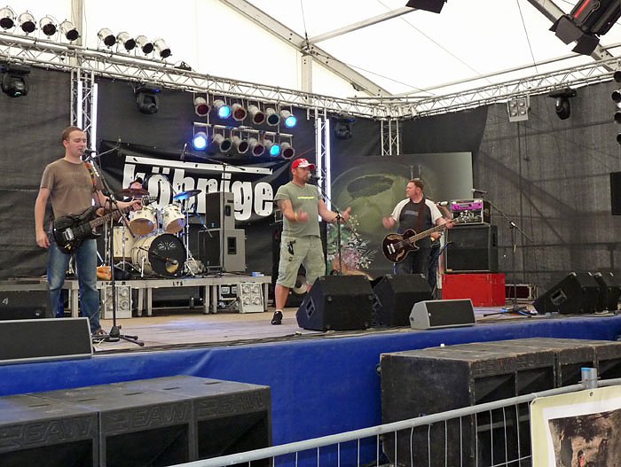 Am Abend gibt es für die früh angereisten Kirmesburschen schon den ersten Höhepunkt, dass Konzert mit Coverrock mit KÖHNIGE (böhse onkelz), hier schon in Aktion zu sehen. Auf dem provisorisch hergerichteten Campingplatz hat kn bereits jede Mengen fröhliches Kirmesburschen getroffen und im Bild festgehalten.