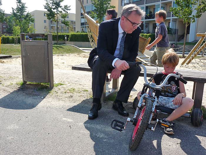 Diese gute Sache müssen wir unterstützen dachte man sich bei der städtischen Wohnungsgesellschaft Wippertal und sponserte weitere Spielgeräte für 200 Euro, so war auch dieseses Spielgerät mit dabei. Geschäftsführer Eckhard Wehmeier tauschte mal seinen kühlen Arbeitsplatz (rund 27 °C) mit den gemütlichen 30,5°C Schattentemperatur und das bei voller Sonne, um die Spielgeräte zu übergeben. Dieses heute schwüle Wetter war mit verantwortlich, dass es doch etwas weniger Kinder auf dem Spielplatz waren.