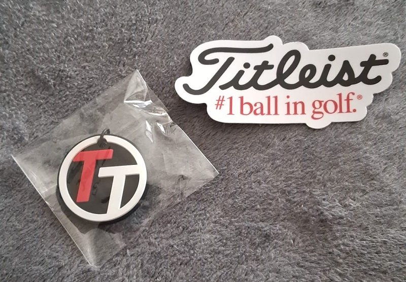 1x Bag Tag Anhänger,1x Ballmarker Kit Set in Dose (das Dose hat leider eine Beule), 1x Schlüsselanhänger, 2xAufgleber