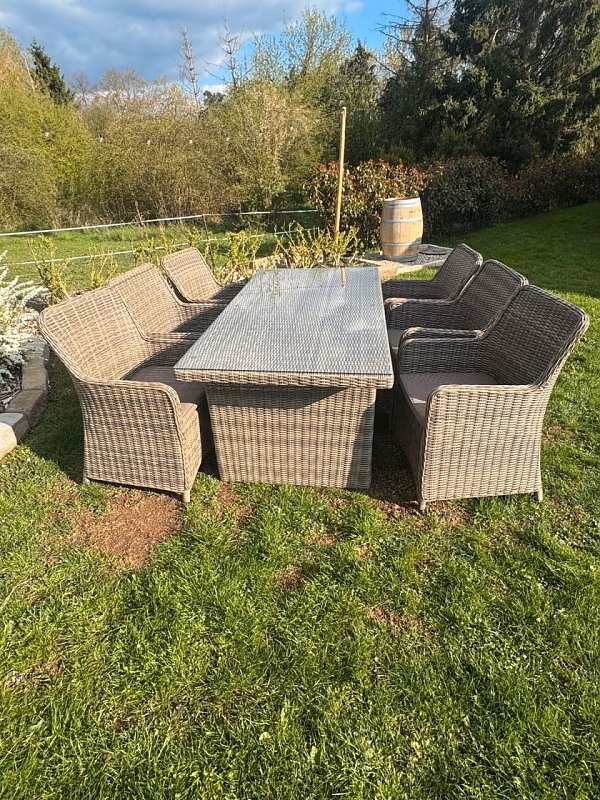 Die Gruppe ist perfekt für entspannte Stunden im Freien und bietet viel Platz für Familie und Freunde. Sie befindet sich in einem sehr guten, gebrauchten Zustand.