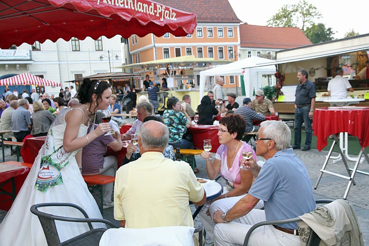 Wichtigste Aufgabe der Weinprinzessin bis zum Sonntag ist, die zahlreichen Gäste zum Weintrinken zu animieren. Gesundheitsapostel müssen jetzt leider mal wegschauen, aber man kann beim Weinfest auch mit alkoholfreien Getränken fröhlich sein.