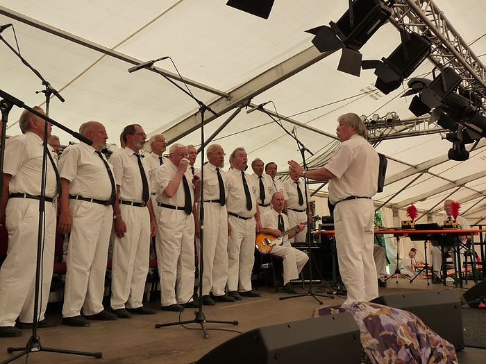 Nach 14:00 Uhr begann im Festzelt im Loh (am Haus der Kunst) ein Kulturprogramm. Sehr hörenswerte Chormusik bot da der Steinkohlenbauverein Zwickau mit seinem Programm und zog damit viele Besucher an.