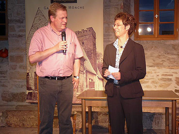 Geschäftsführerin Britta Ronnenberg vom Klostergut Mönchpfiffel und Hans-Joachim Warnecke, Vorstandsmitglied Kyffhäusersparkasse begrüßten im historischen Ochsenstall des Klostergutes Mönchpfiffel zahlreiche Gäste. So ließen es sich auch Landrat Peter Hengstermann und Landtagsmitglied Gudrun Holbe (beide CDU)) nicht nehmen an dem Kabarettabend teilzunehmen, der als Auftakt zum Tag des offenen Denkmals im Kyffhäuserkreis gilt. Die nun schon achte Veranstaltung, die von der Sparkassen Kulturstiftung im Rahmen der Aktion "hör-mal im Denkmal" unterstützte Kabarett-Veranstaltung mit Simone Solga "Bei Merkels unterm Sofa" war wieder ein voller Erfolg und fügte sich nahtlos ein in das Jubiläum 175 Jahre Kyffhäusersparkasse.