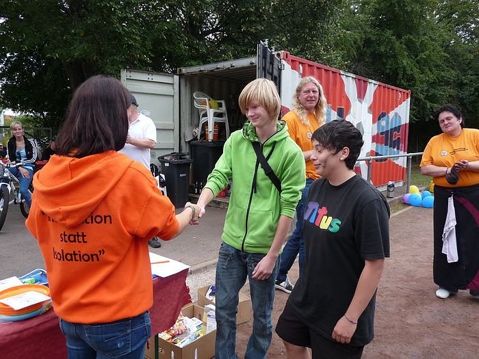 Autor: khhHut ab, es war schon eine Tolle Initiative, die da Hennig Most (li.) gestartet hatte. Auf seine Idee hin wurde auf dem Borntalsportplatz dieses Familiensportfest unter der Überschrift Spiel ohne Grenzen gestartet. Vom Geschäftsführer des Stadtjugendringes e.V., Andreas Gothe, gab es als Dank eine Aufmerksamkeit, einen Tankgutschein der Tankstelle Honsel.