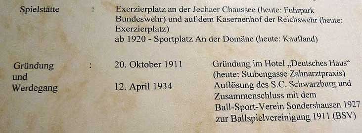 Und heute war ja ein besonderer Tag gleich in mehrfacher Hinsicht. Auf den Tag genau vor 100 war der S.C. Schwarzburg Sondershausen gegründet worden. Und rund 100 Schritte vom heutigen Rathaus entfernt war damals im "Deutschen Haus" (heute Zahnarztpraxis Stubengasse) die Gründung erfolgt.