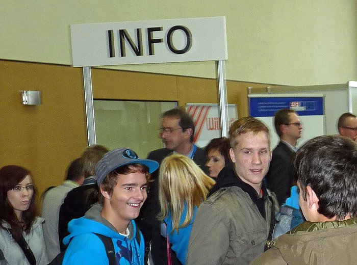 Übrigens war es den "beiden Machern", Susanne Teichmann und Ronald Barth, der Berufsinfotage gelungen, sich der Kamera von kn zu entziehen. Nur im Gewühl des Infostandes am Eingang gestern zum Start waren die beide Akteure zu sehen, um dann ständig an allen möglichen Ständen nach dem Stand der Dinge zu sehen.