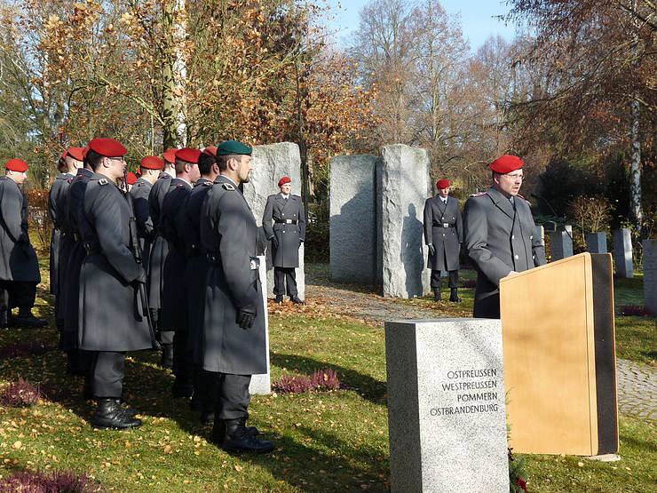 Die Gedenkansprache hielt Major Heider. Er verwies auf die Geschichte des Volkstrauertages und stellte fest, dass denkt man an Afghanistan, der Volkstrauertag weiterhin Bedeutung hat und kein "alter Hut sei". Er fasst den Volkstrauertag als Mahnung auf und bedauert, dass selbst nach Ende des zweiten Weltkriegs es noch über einhundert Kriege in der Welt gab, mit vielen unzähligen Toten.